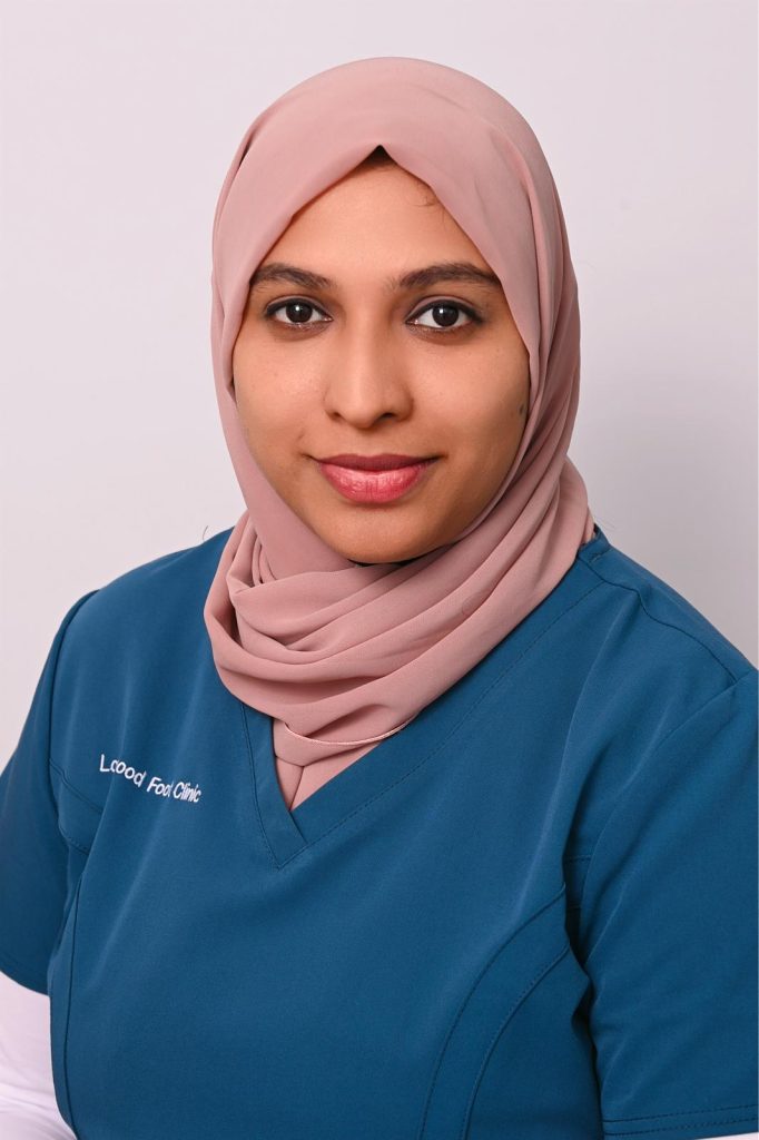 I am Afdha Aly, your podiatrist/chiropodist at Longwood Foot Clinic. I am a member of the College of Podiatry and a HCPC registered podiatrist. I graduated from University of East London in 2012 with a Bachelor of science honours degree in podiatric medicine. Following graduation, I moved to Scotland to live with my husband and started working in a private podiatry practice north east of the border for a few years before relocating to London in 2018.