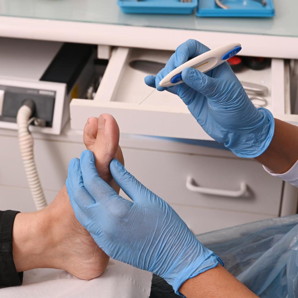 - We test nerve sensation using the 10gram monofilament testing to detect early signs of neuropathy — vital in diabetic foot care.